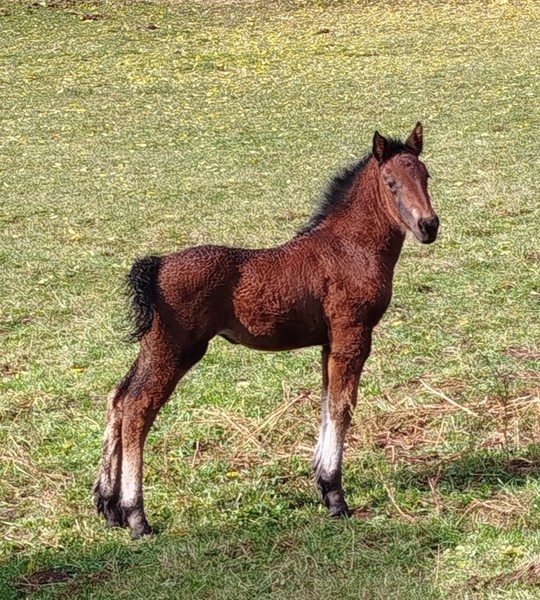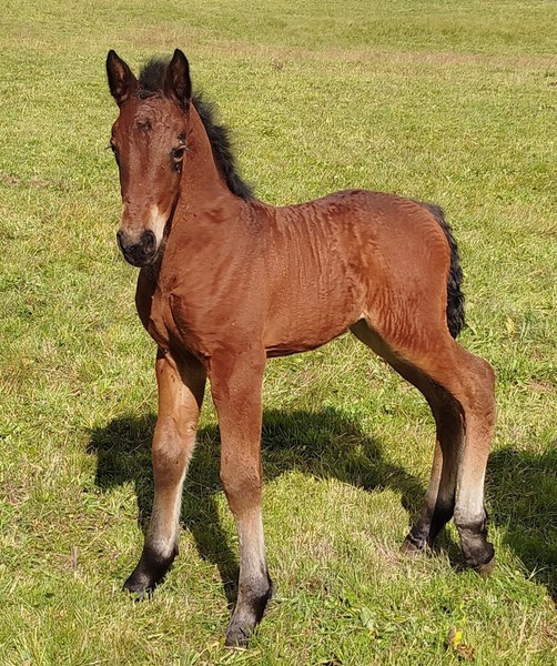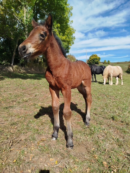 Poulain par Mila (trait comtois) et Yk Dark Rayan (arabo-frison)