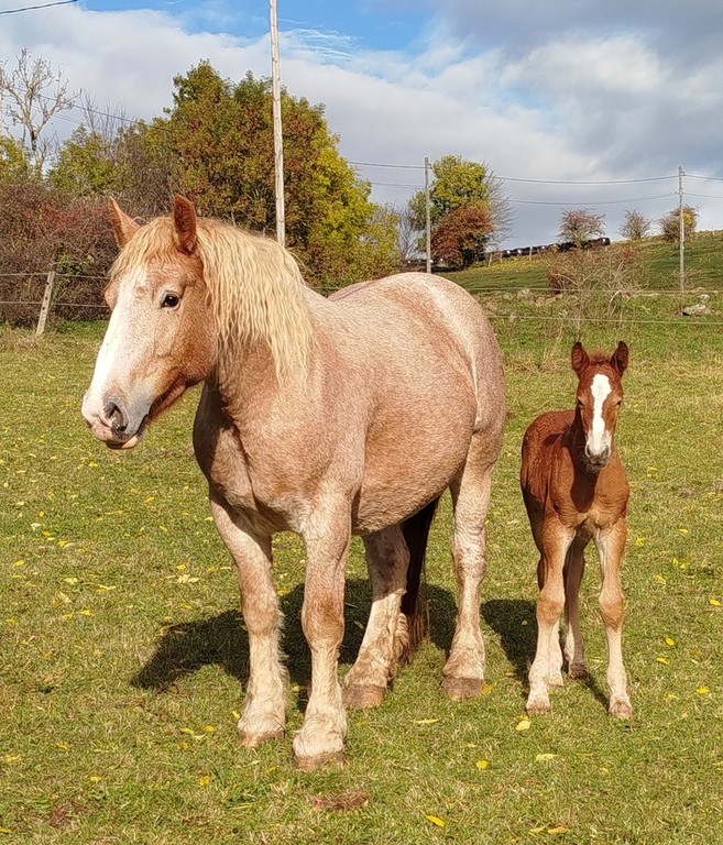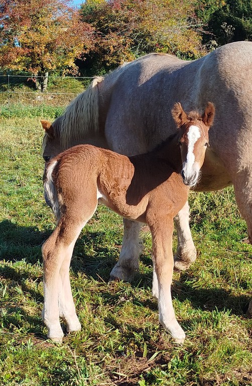 Pouliche par Lola (trait ardennais) et Yk Dark Rayan (arabo-frison)